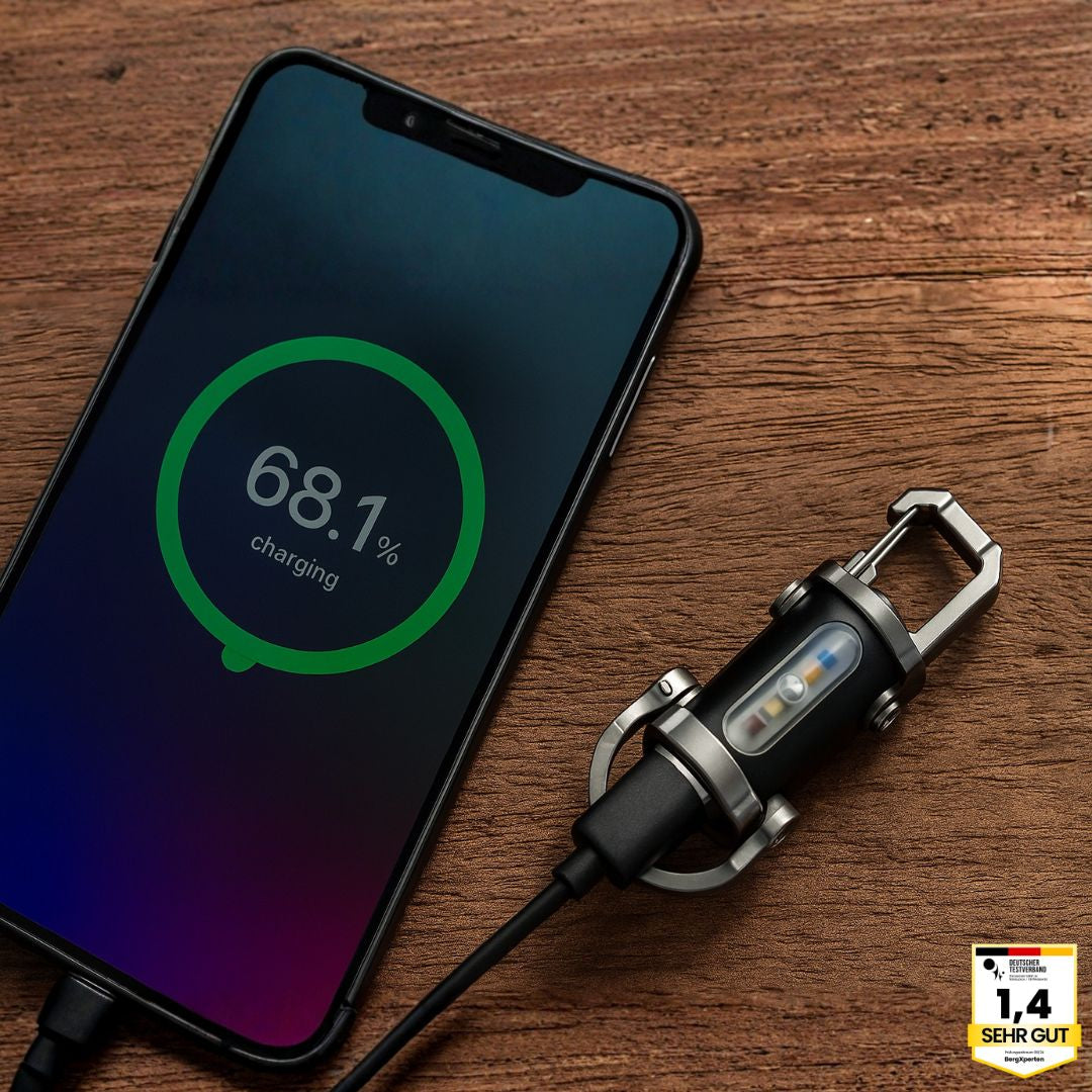 2-in-1: Taschenlampe & Powerbank – Kompakt, leicht & immer griffbereit am Schlüsselbund.