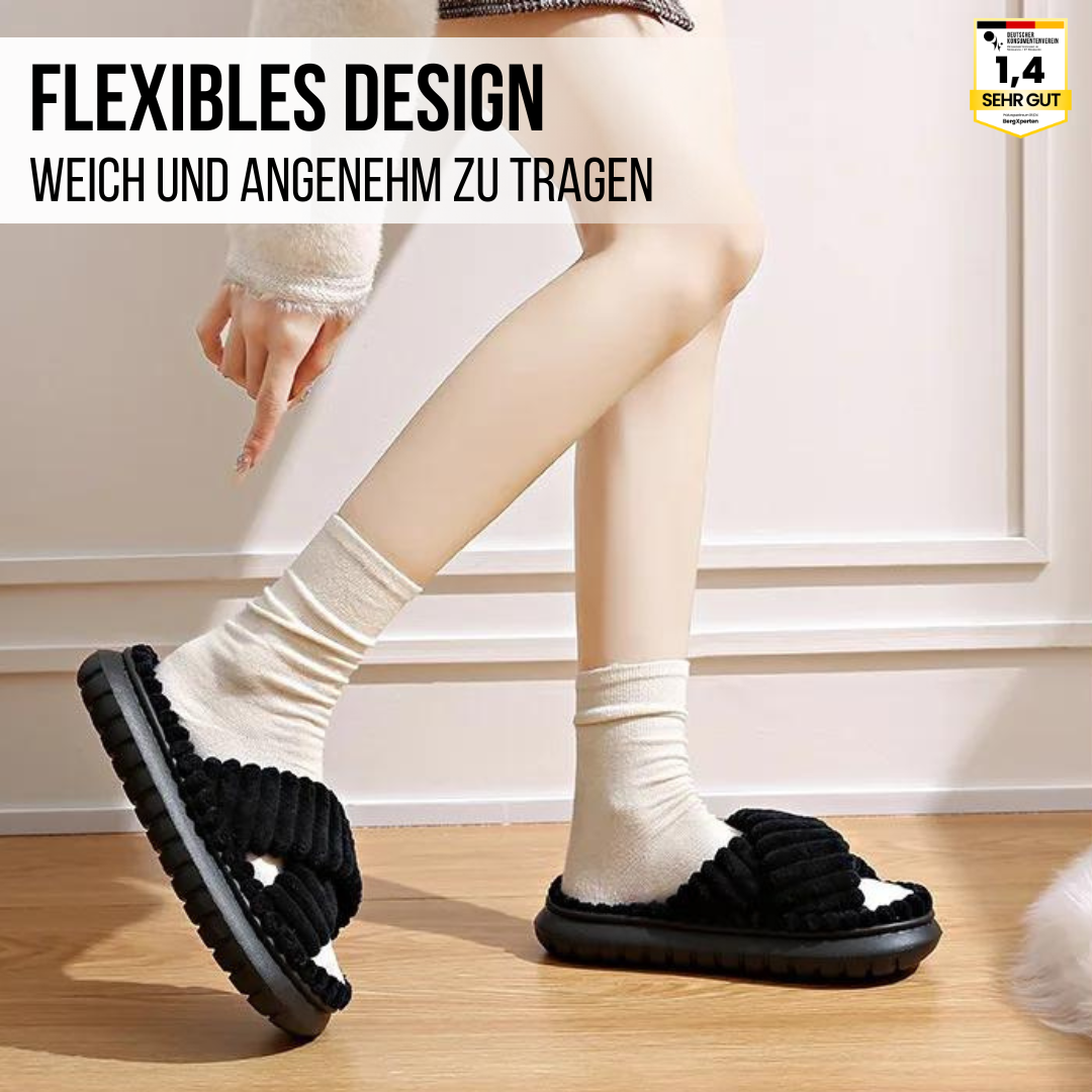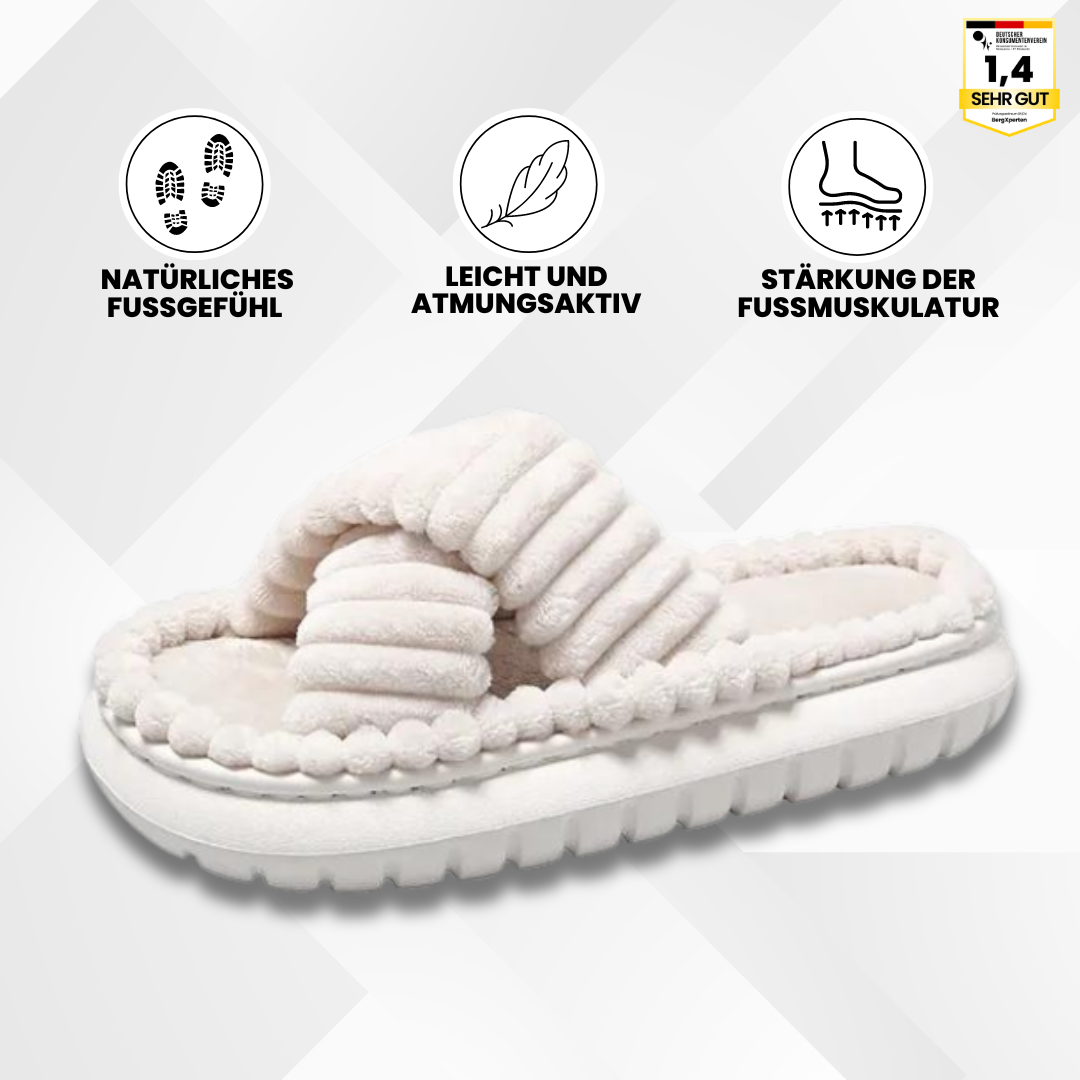 Stellen Sie sich vor, Sie tragen Hausschuhe, die sich superweich und gemütlich anfühlen, als würden Sie auf Wolken gehen. Diese besonderen Hausschuhe schmiegen sich sanft an Ihre Füße und geben ihnen ein entspanntes und glückliches Gefühl.
